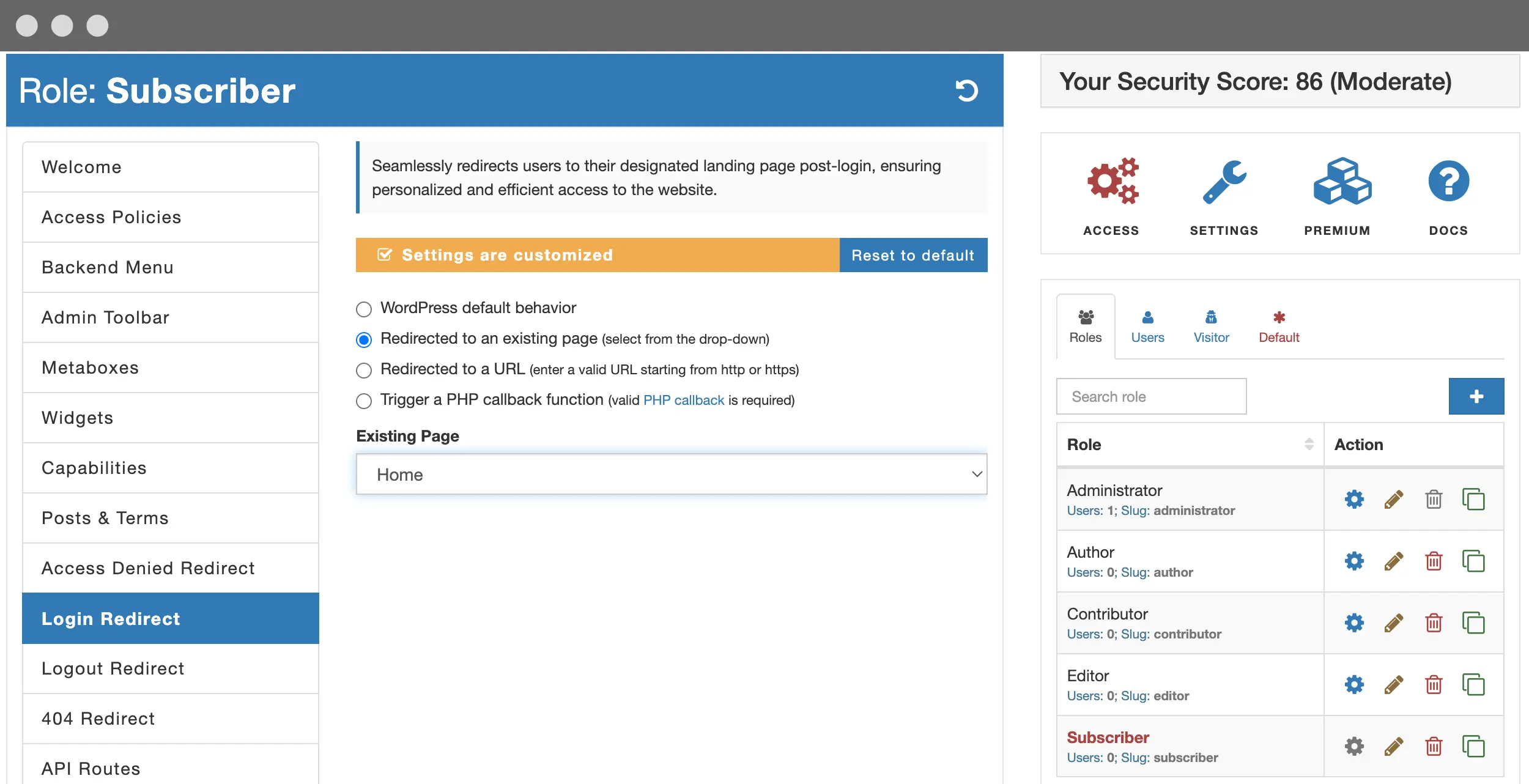 Redefine login, logout, 404, and access denied redirects for any role, user, or visitor. Reduce the number of plugins you have today to manage these different types of redirects and use just AAM.