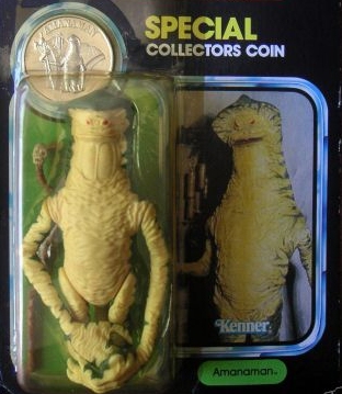 In 2004, Bubo was at long last cast in plastic, as part of a set including the ultra-obscure B'Omarr Monk and even more obscure slug-like Wol Cabbashite (another critter I'm fond of), and Amanaman, too, saw the release of a brand-new, highly detailed action figure - finally giving me access to one with the all-important corpse collection.