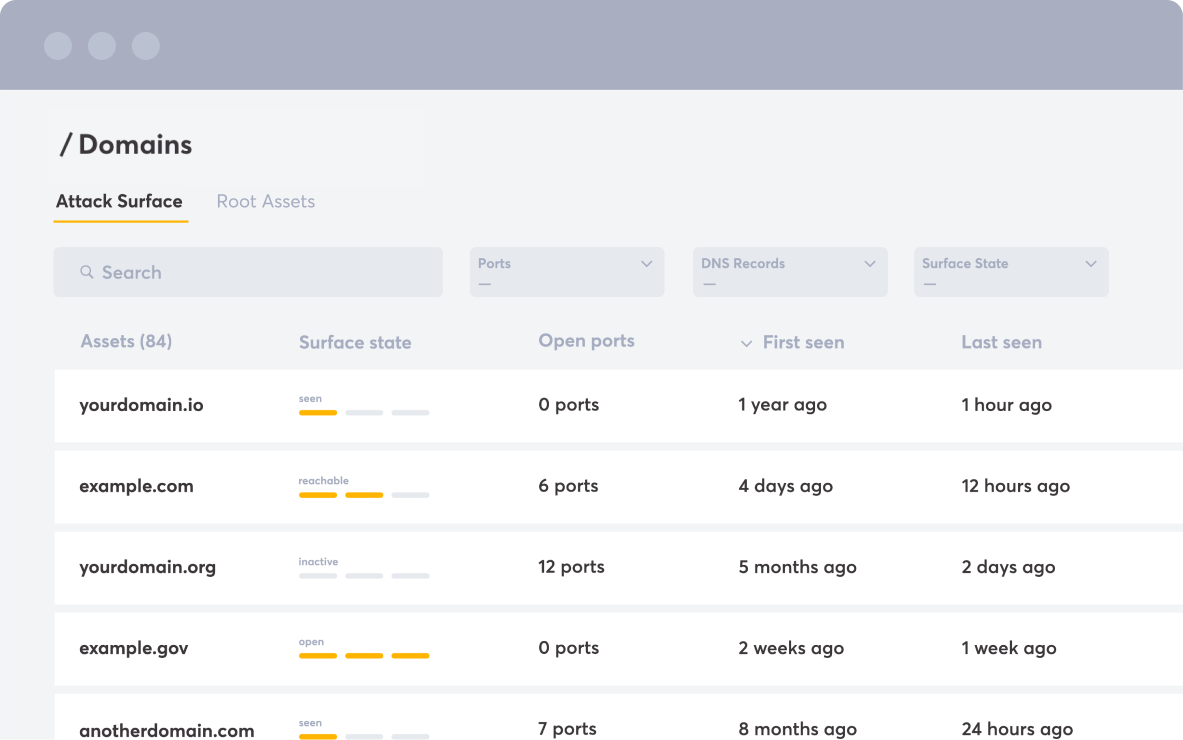 Get a comprehensive view of your attack surface and secure your domains, apps, and APIs. Classify discovered assets and get recommendation where to dig deeper using Application and API scanning.