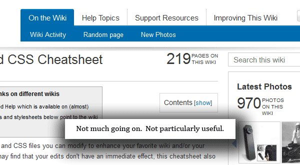 Thanks for the honorary mention. By the way, your slideshow looks different. Is that like a custom slideshow? Was there something about the default Wikia one (in the editor, there's a "Slideshow" feature just below the Publish button) you didn't like? It would look like this: