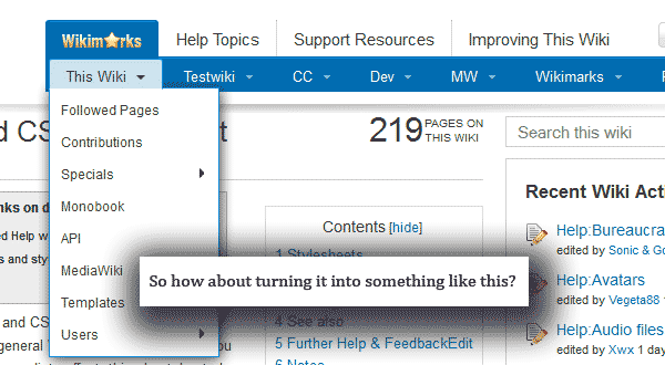 I am EXTREMELY offended that I'm not in wikimarks credits :P. Just kidding. It's really good to see it out of beta and into active use... I'll probably add it to my global.js some time in the conceivable future. Two things though. I completely forgot how to wikimarks editor works because I haven't looked at the code recently, but wouldn't it be more convenient for the end-user to create a Special Page called Special:WikiMarks and use js to put and iFrame onto that? And using what you've learned from WikiMarks Shadow, have you found out how to sanitize < and > and / in shadow? Best, --Kangaroopowah (Talk) 00:51, November 30, 2012 (UTC)