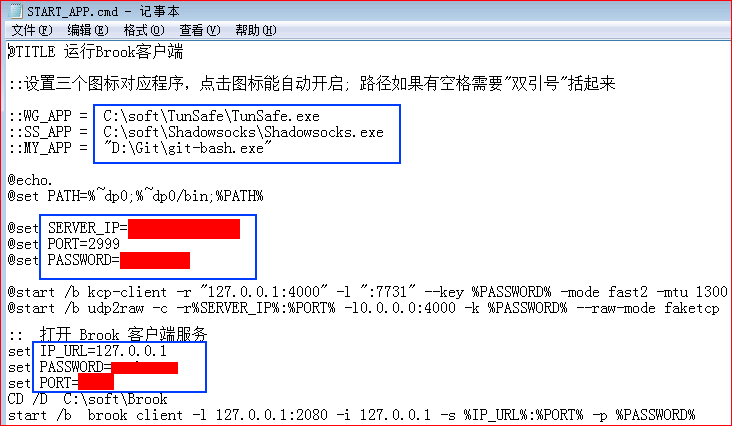 - 修改 Windows_KCP.cmd 和 Windows_UDP2RAW.cmd 服务器IP参数,双击启动调试