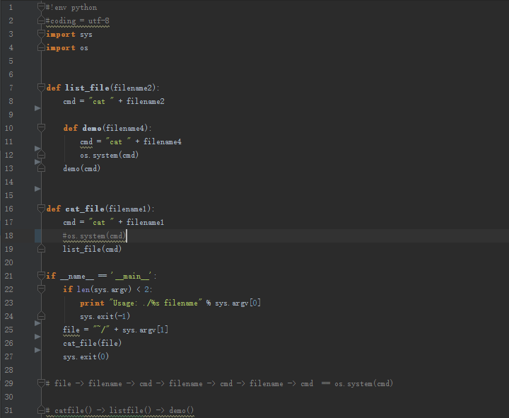 主要是程序中通过Python的OS接口执行系统命令,常见的危险函数有
