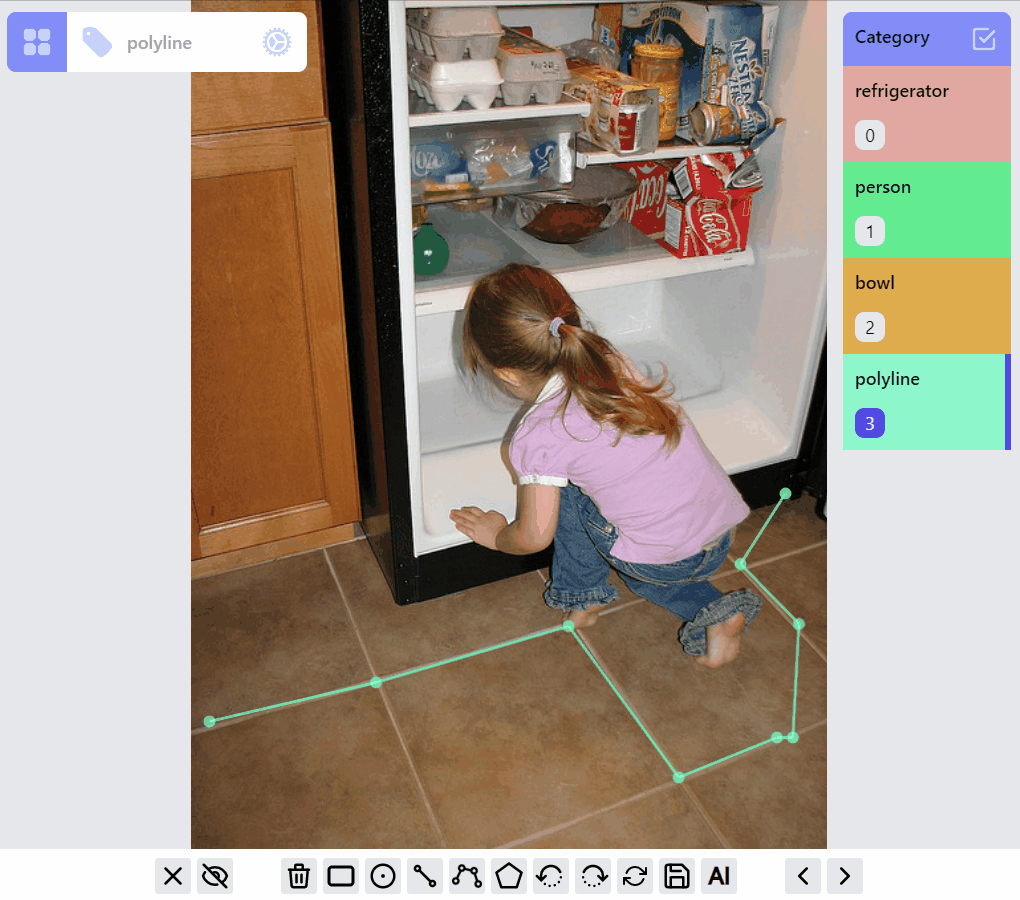 Operations on PolylineLabel and MaskLabel are more complicated, both of them supporting "AI mode", Currently AI mode is just using opencv's intelligentScissor to find lines, it maybe helpful for PolylineLabel but not so much for MaskLabel, we will soon integrate/enable related AI predictions into the annotation process based on label types.