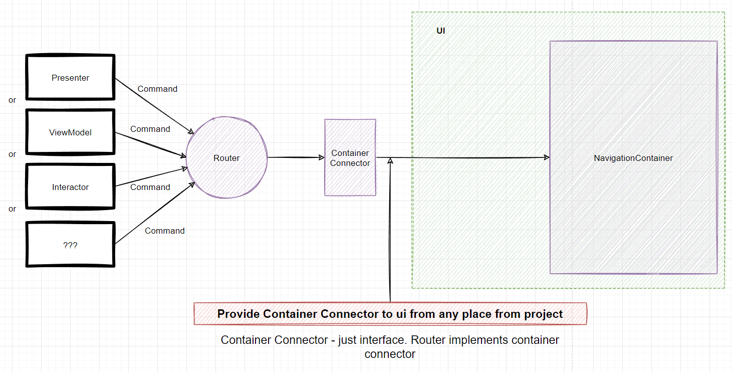 - Framework free (Router can be injected in any layer of project. Navigate from any place you want. Example: UI-navigation or business logic navigation)
