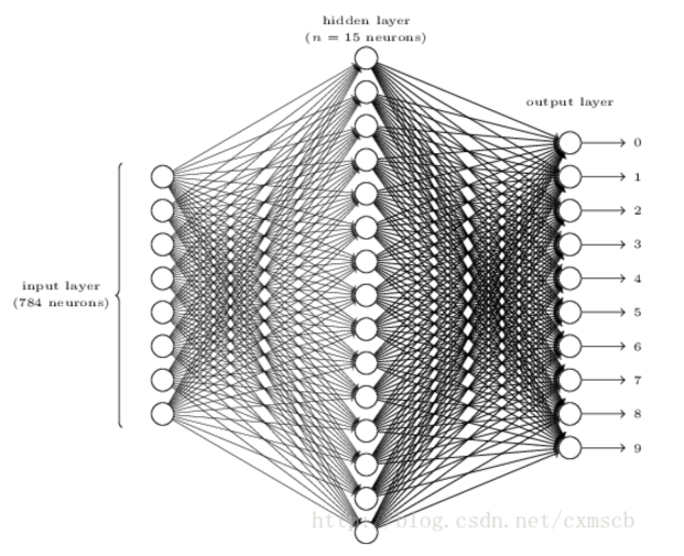 最后的全连接层是 10 个节点,全连接层的上一层是 15 个特征值,这样就把 15 个特征值归类为 10 种特征。举例来说,比如输出的 15 个特征标记位 t1-15,而 t1,t3,t5 三种特征可以认为都属于某一种输出 o1。而 t2,t6 两种特征可以认为属于输出 o2,以此类推,就可以把 15 个特征分类为 10 个输出。