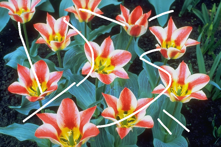 - the collinearity of the vector from a pixel to its neighbors and the FFM direction of propagation. This factor will have the effect of extending isophotes (ie lines) reaching the area to inpaint, by giving more weight to neighbors when they are in the axis going from the inpainting pixel in the direction of propagation of the FFM.