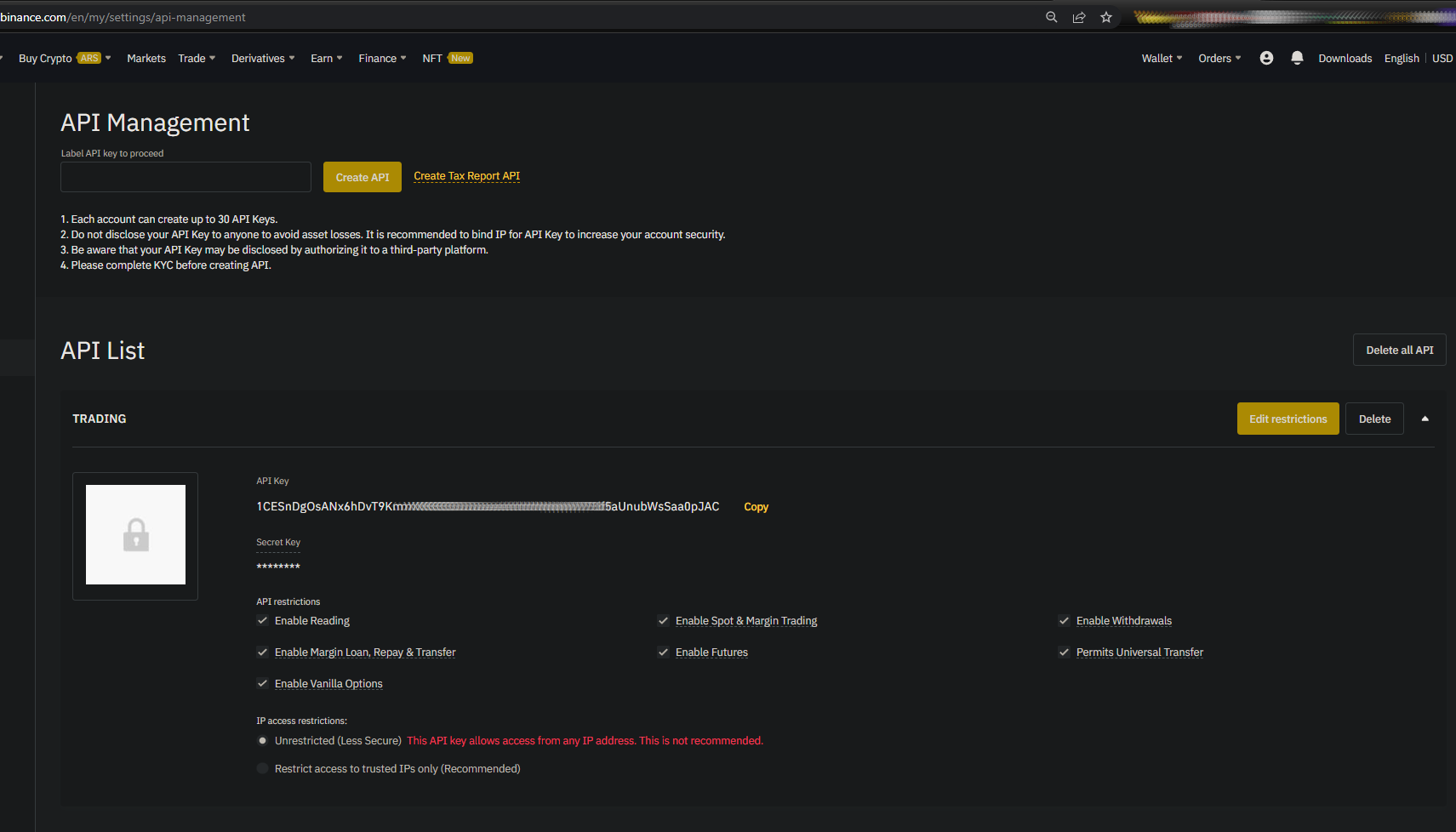 If you are reading this after year 2023, the web of Binance for the API Keys has changed, but it still works.