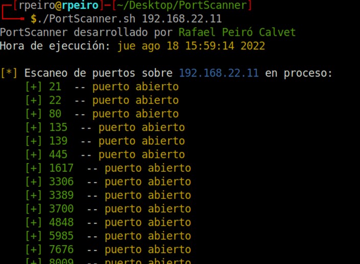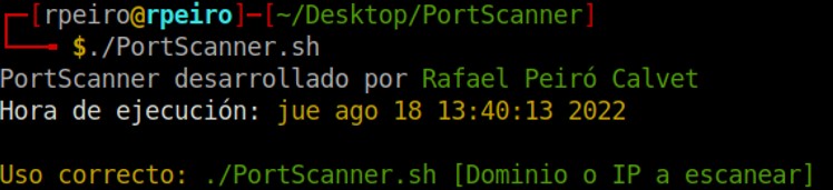 Le das permisos de ejecución al archivo Portscanner.sh