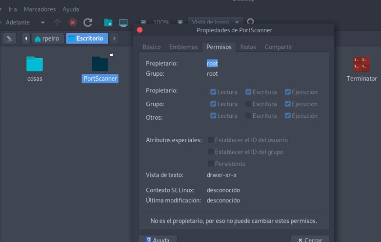 Lo único que tienes que hacer es cambiar el propietario y grupo de propietarios de la carpeta Portscanner por tu nombre de usuario.