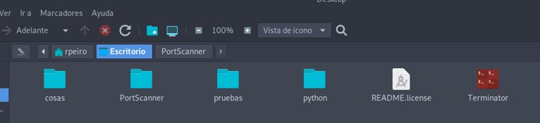 Accedes a la carpeta PortScanner y listas el contenido de la carpeta