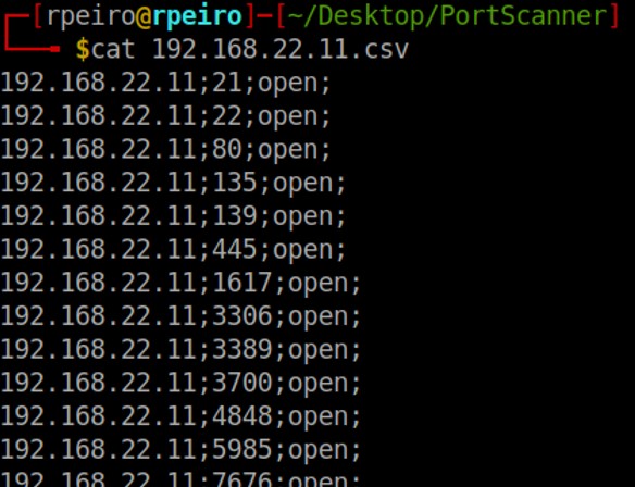 Una vez a terminado el escaneo de todos los puertos va a generar un csv con nombre del argumento que hayas puesto para escanear