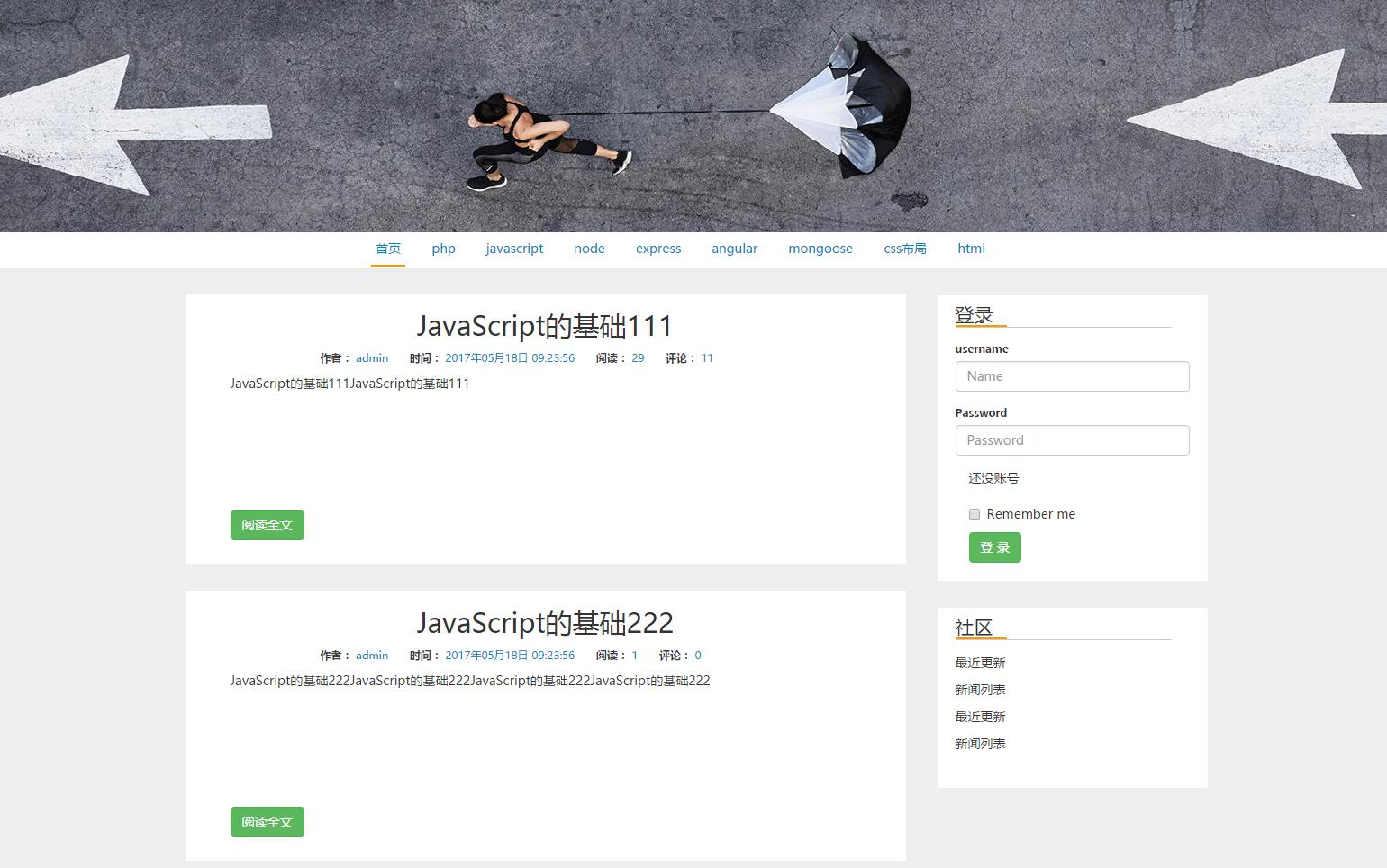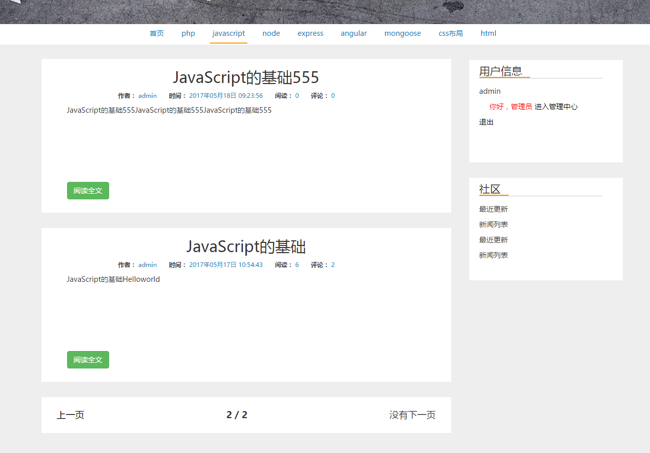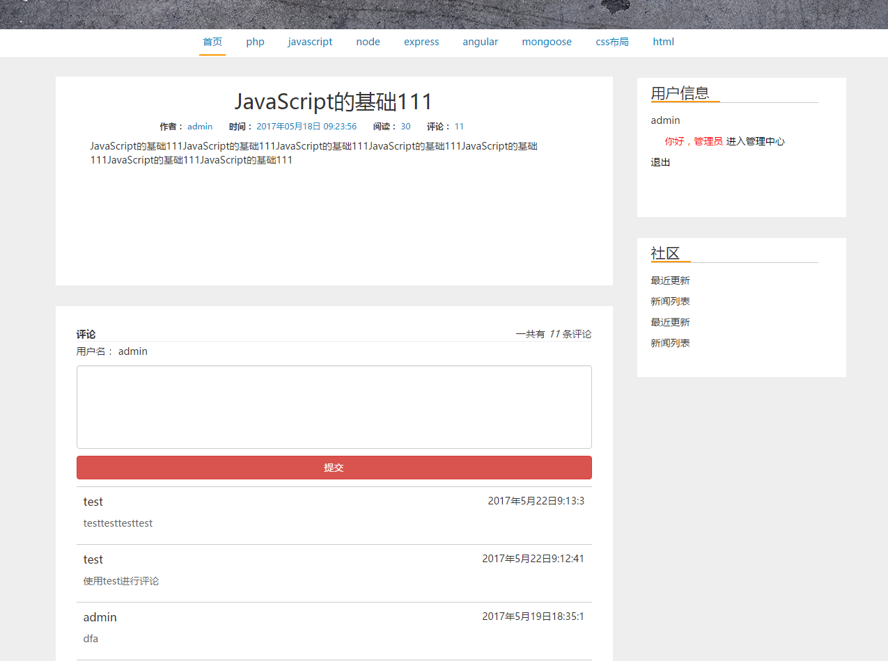 - 使用nodeJs的后端框架express创建博客