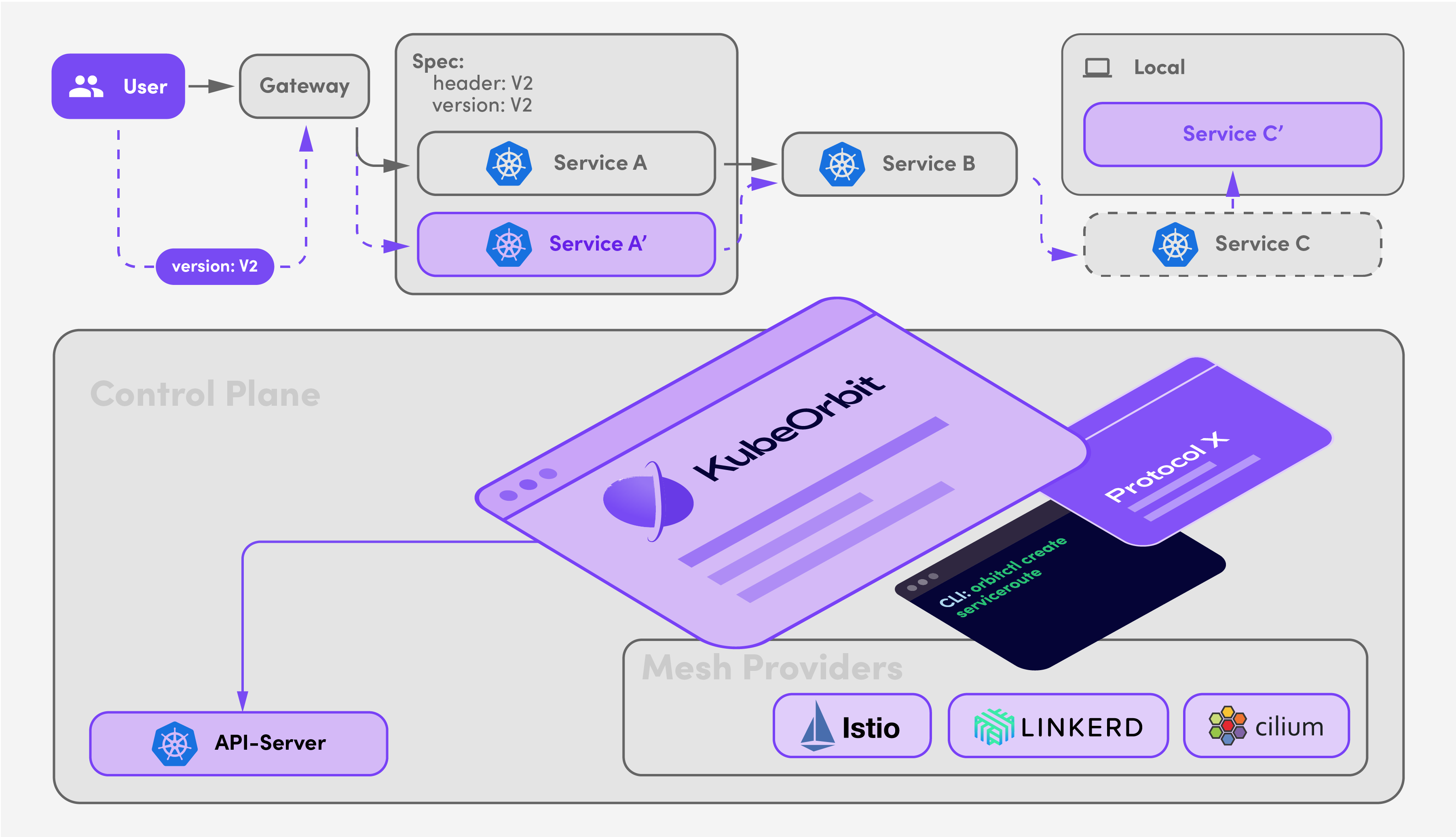 - KubeOrbit CLI: just using one command, forward the traffic from in-cluster service to local service in a flash, no matter your service discovery is based on Eureka, Consul, Nacos or Kubernetes SVC.