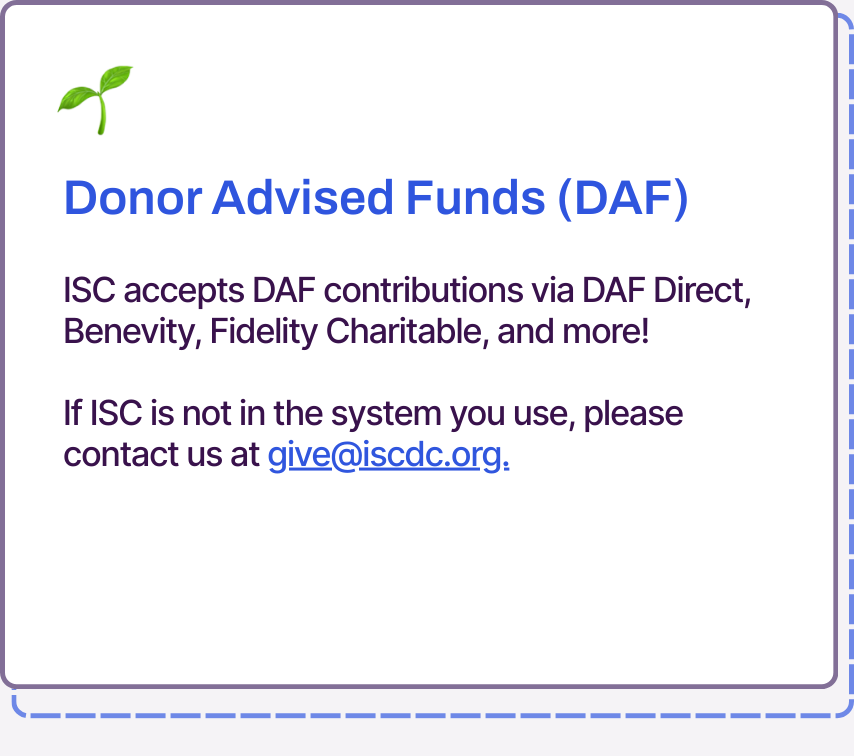 Email us at give@iscdc.org or call 202-992-6691. We’d love to hear from you.