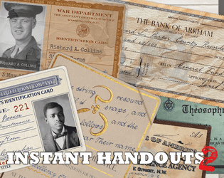 The handout collection covers the period between 1900 and 1960, with pre-made high-resolution certificates, documents, and other elements. Some of the elements are historically accurate, but there are also some fabricated ones specifically created for role-playing game purposes.