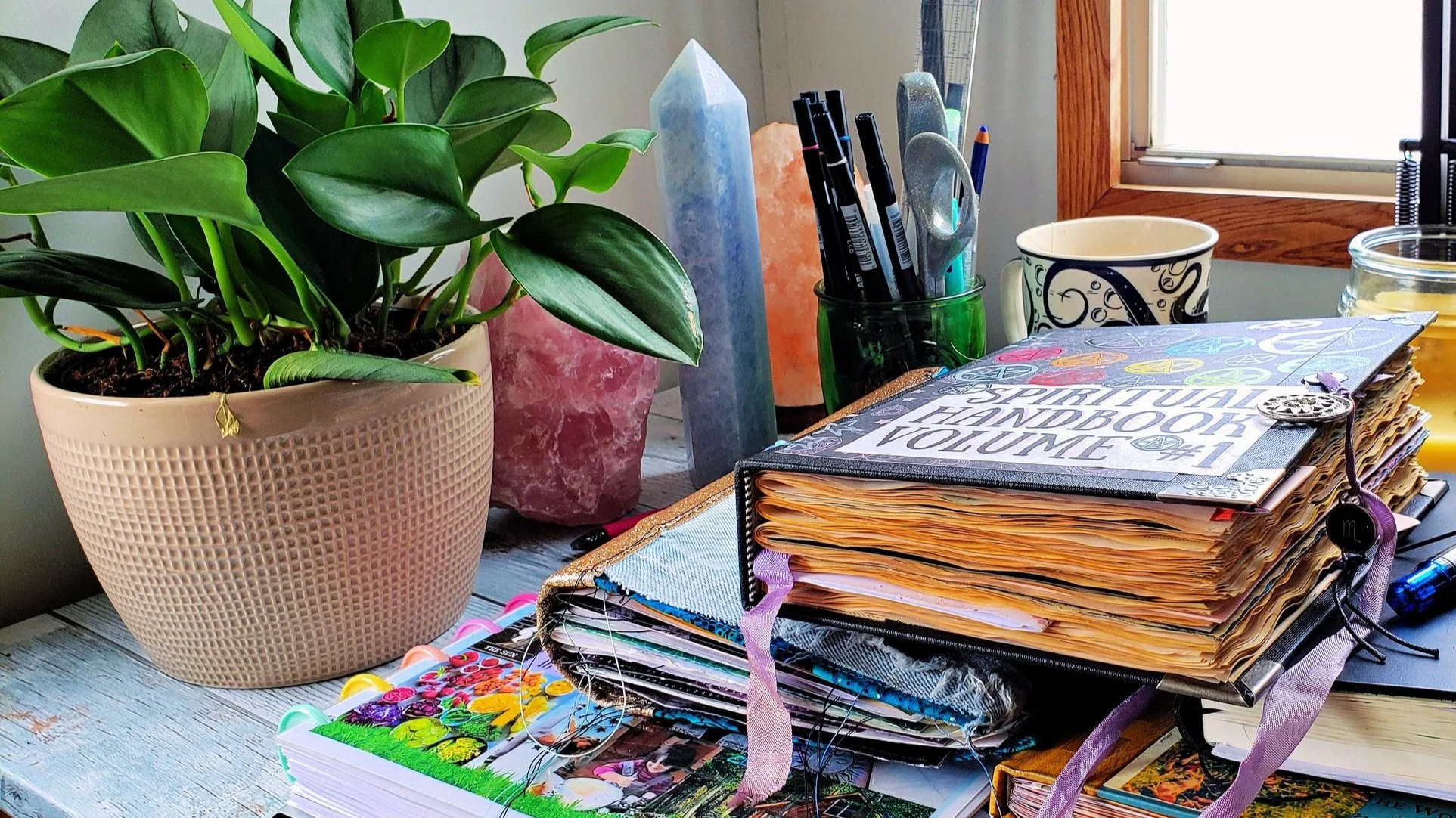 As a child , My Aunt Jeanne, (thank the gods for her) taught me how to see and practice energy healing through reiki and crystals, to appreciate the magic in the animals and the forest and later in life introduced me to oracle cards and creative journaling.