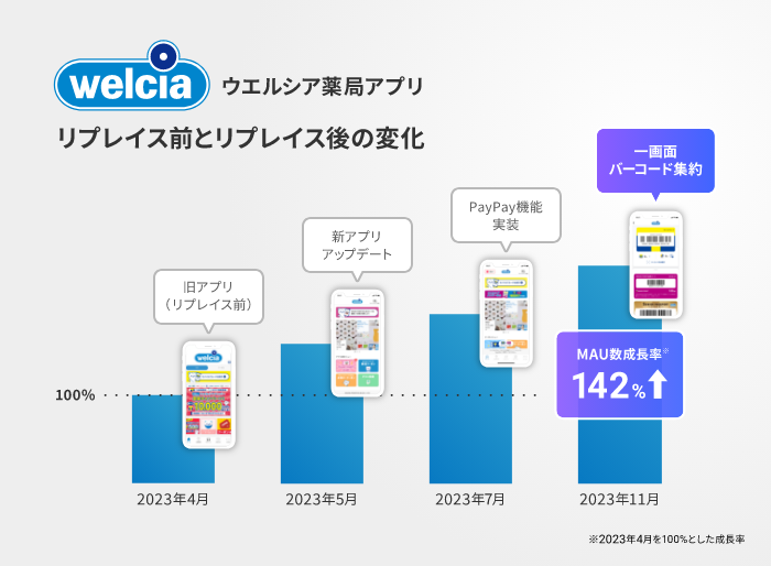 リプレイス後の効果(MAU数142%上昇)