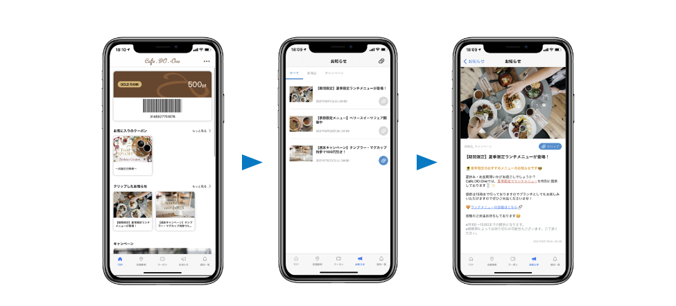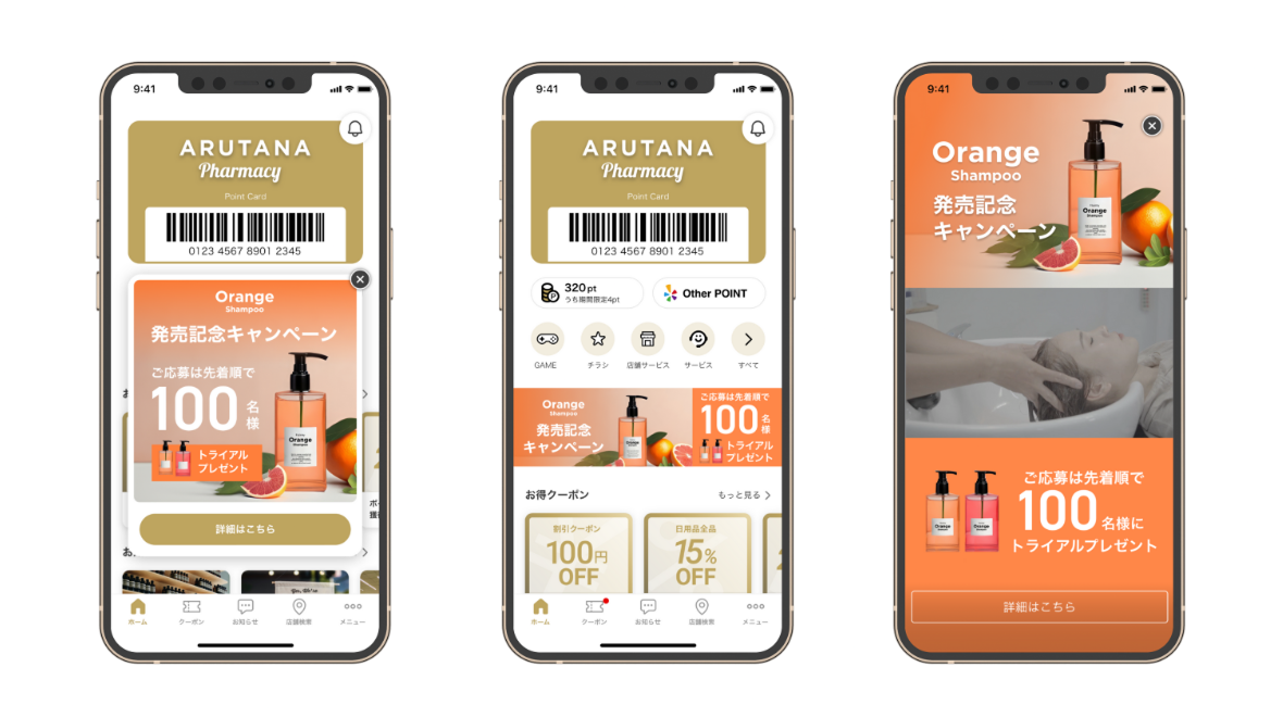 各店舗のキャンペーンやクーポン情報をお知らせしたい場合などでご利用いただけます。