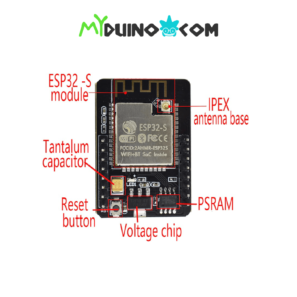 The ESP32-CAM is a very small camera module with the ESP32-S chip that costs approximately $10. Besides the OV2640 camera, and several GPIOs to connect peripherals, it also features a microSD card slot that can be useful to store images taken with the camera or to store files to serve to clients.