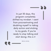 This 63-page guided program takes you step-by-step from procrastination and self-doubt to confidence and discipline.