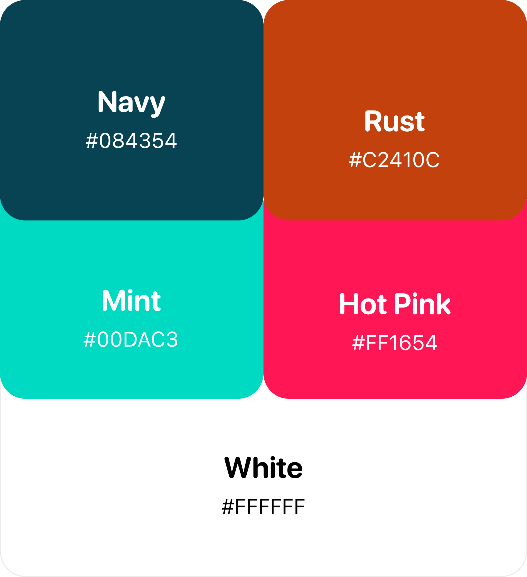 Bypassing traditional pastels, we anchored the UI in grounded Navy and Rust to appeal to the masculine user. These primary tones are balanced with energetic Mint and Hot Pink accents, crafting an intuitive, high-end aesthetic that feels like a trusted advisor.