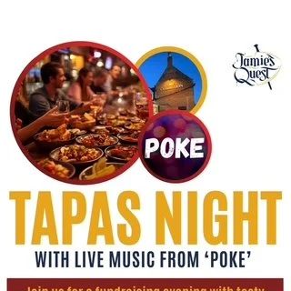 Join us for a fundraising evening with tasty tapas (served 9-11pm) and live music from ‘Poke’. Pop along for a food, or just a drink, and help raise much needed funds for Jamie’s Quest.