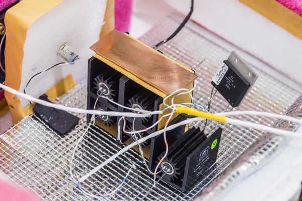 Trim elements were soldered directly to JRL-1 current pins to ensure robust connection.