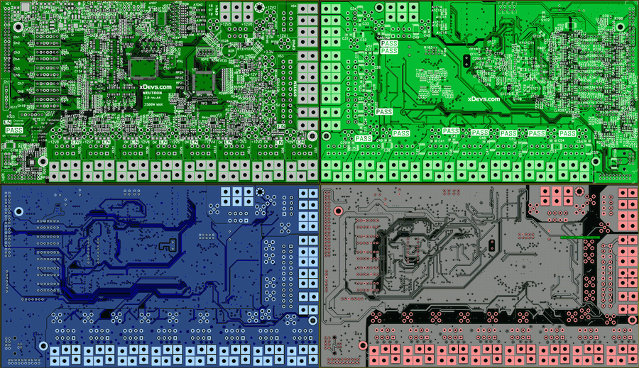MOSFETs are physically located on isolated Intel Xeon processor heatsinks and connect with control board via dedicated 7-pin connectors. Since we don’t have very high performance requirements, this approach working okay. For better accuracy or higher frequency dynamic loads location of opamp much closer to MOSFET would be required to minimize inductance and capacitance of all signal nodes.