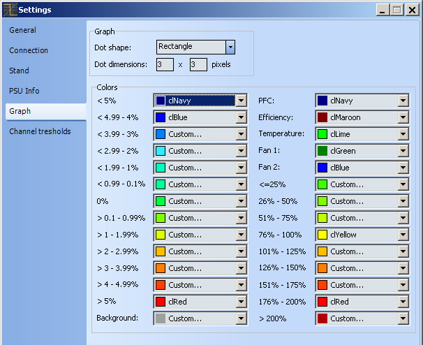 Graph settings include controls for color settings to each deviation level and graph pixel size.