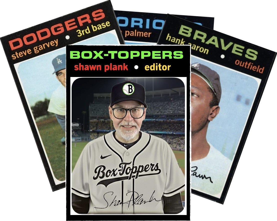 Shawn Plank became a baseball fan when he started collecting baseball cards at the age of 6, the black-bordered 1971 Topps cards. He developed Box-Toppers in the mid-1990s and has tracked every Major League game played since 1995. The Box-Toppers.com website was launched in 2013. He is a writer who has been a newspaper reporter and columnist, he co-authored a book and composed and recorded a song heard on The Dr. Demento Show.