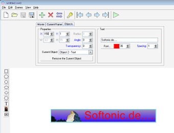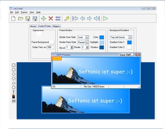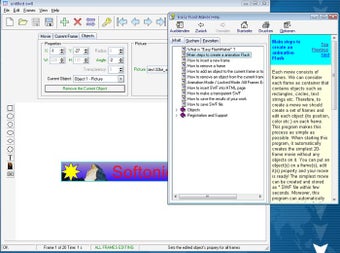 Die Benutzeroberfläche von Easy Flashmaker enthält einen Menü- und Arbeitsbereich. Der Nutzer definiert im ersten Schritt Größe und Bildanzahl des Banners. Dann fügt der Anwender Objekte aus der Werkzeugleiste oder aus eigenen Dateien an der gewünschten Stelle des Banners ein.
