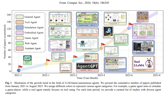要更加系统性的了解AI Agent的前世今生,我们还可以进一步研究2024年AI Agent的这几篇经典综述。这些论文不仅为研究人员提供了宝贵的研究路线图,也为AI Agent的未来发展提供了深刻的洞见。