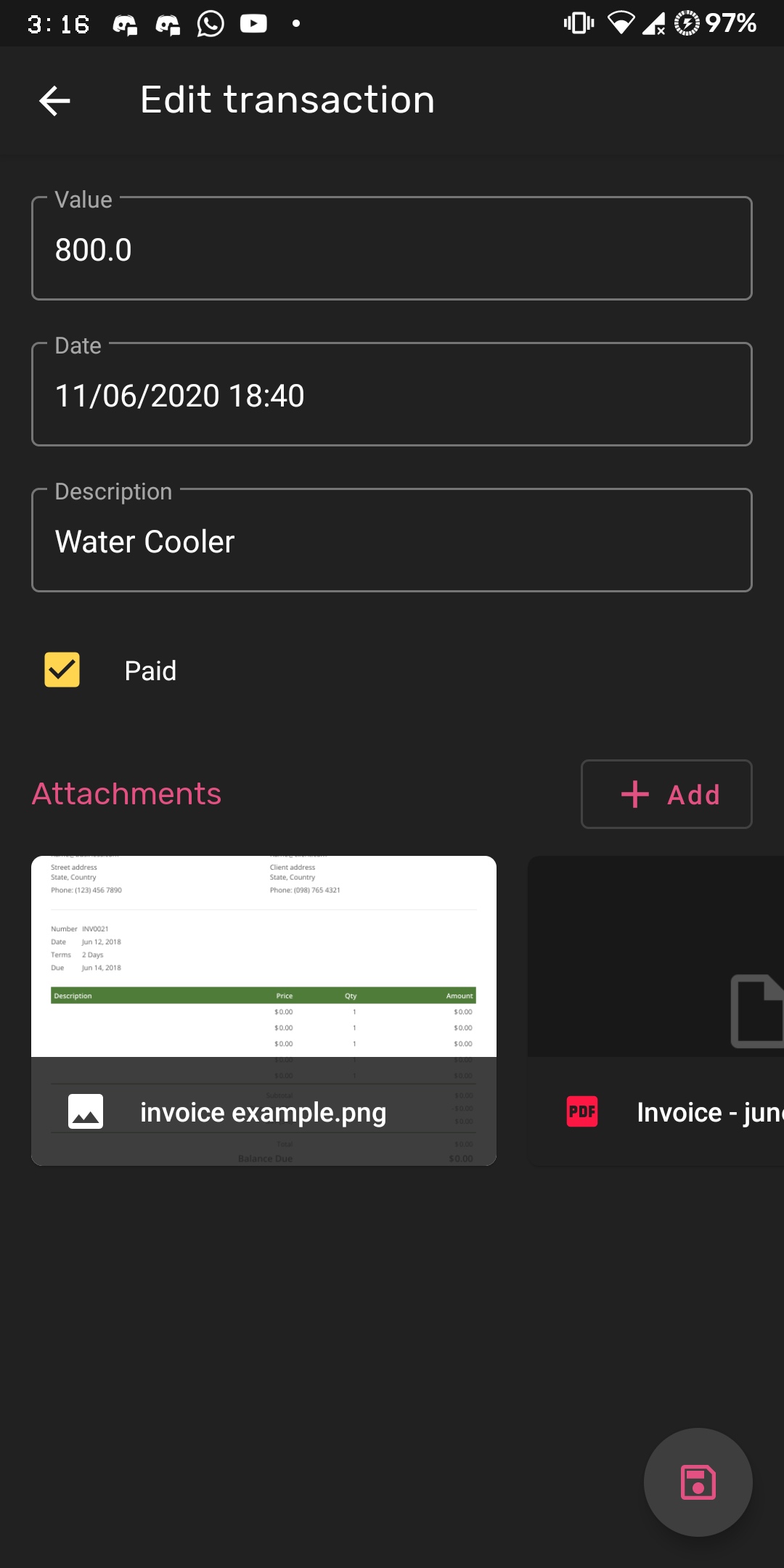 - Upload attachments to each transaction
