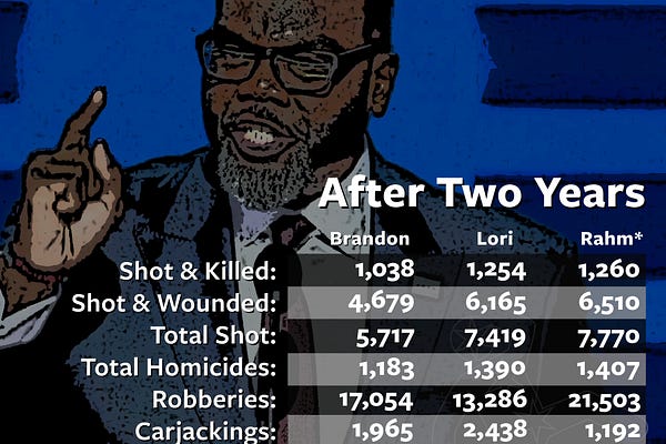 May 15th, 2024 marked the one-year anniversary of Brandon Johnson's term as mayor of Chicago. Let's see how Brandon's crime stats compared to Lori's and…