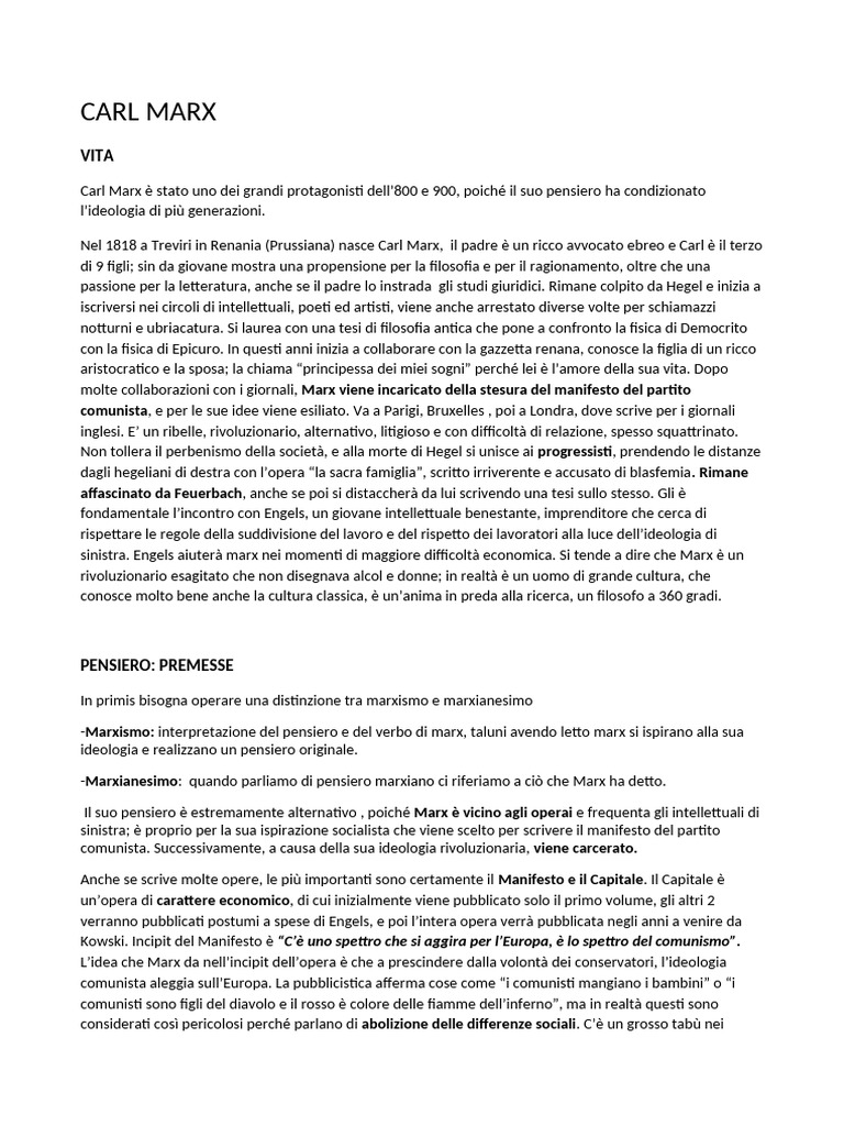 Anche se scrive molte opere, le più importanti sono certamente il Manifesto e il Capitale. Il Capitale è