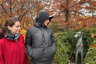 I was walking down the street and I noticed a young girl—eight or nine years old, I’d guess—moving her arms around in different poses on the sidewalk…