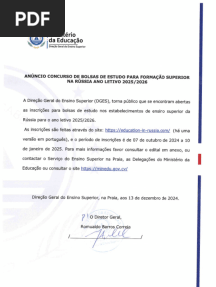 • Inscrições para Bolsas na Rússia 2025/2026