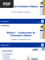 Java é uma linguagem de programação que combina várias tecnologias, oferecendo portabilidade através de byte-code, segurança com coleta automática de lixo e tipagem forte, e suporte a programação concorrente. A orientação a objetos em Java é central, com classes e objetos, herança simples, e uso de interfaces, além de encapsulamento por meio de getters e setters. O desenvolvimento em Java envolve compilação e interpretação, com um foco em práticas como construtores e agregação para reutilização de código.