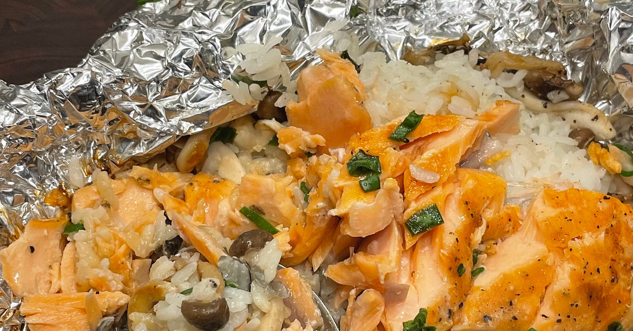 Salmon in Foil w/ Mushrooms &Β Rice