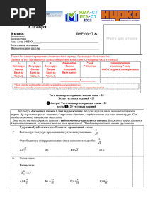 • Алгебра 9 Класс Вариант А Базовое Изучение