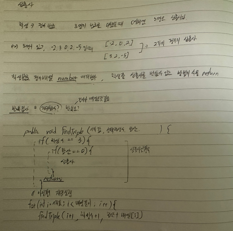 이런식으로 코드를 직접 짜기전에 노트에 적으면서 생각을 해보는 편이다.